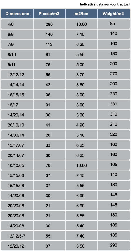 4/6; 6/8; 7/9; 8/10; 9/11; 12/12/12; 14/14/14; 15/15/15; 15/17; 14/20/14; 20/10/10; 14/30/14; 15/17/07; 20/14/07; 10/10/05; 15/15/06; 15/15/08; 14/20/06; 20/20/06; 20/20/08; 14/20/08; 12/12/5-7; 12/20/12.